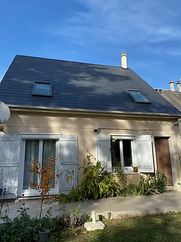 Pour la concrétisation de ce projet, nous avons entrepris un processus complet de restauration du toit. Cela a impliqué la réparation des éléments de charpente endommagés, la réfection du faîtage, la recrépissage de la cheminée, ainsi que le remplacement des ardoises détériorées et manquantes. Par la suite, un nettoyage en profondeur du toit a été effectué, incluant le démoussage, suivi d’une application d’hydrofuge visant à prolonger la durabilité des ardoises et à assurer la pérennité du toit.