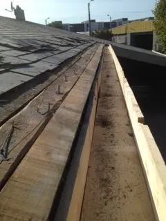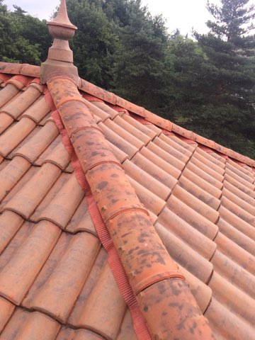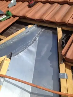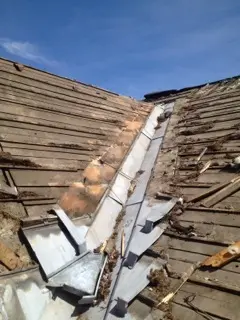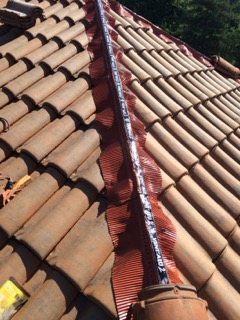 Le toit est désormais sécurisé, et le nouveau caniveau en zinc assure une évacuation en toute sécurité des eaux de pluie.