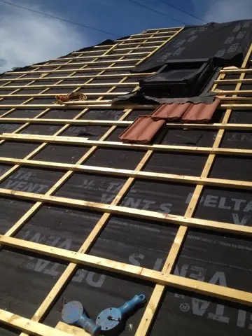 Pose du pare-pluie et préparation du support servant à recevoir les tuiles