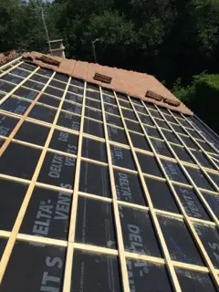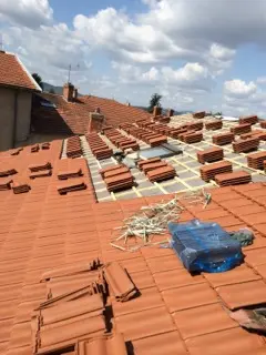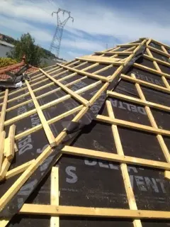 Notre équipe a donné une nouvelle vie à votre toiture en retirant les anciennes tuiles, réparant la charpente endommagée, ajoutant une isolation multicouche, et enfin en posant de nouvelles tuiles. Un travail de qualité pour une toiture rénovée et durable.
