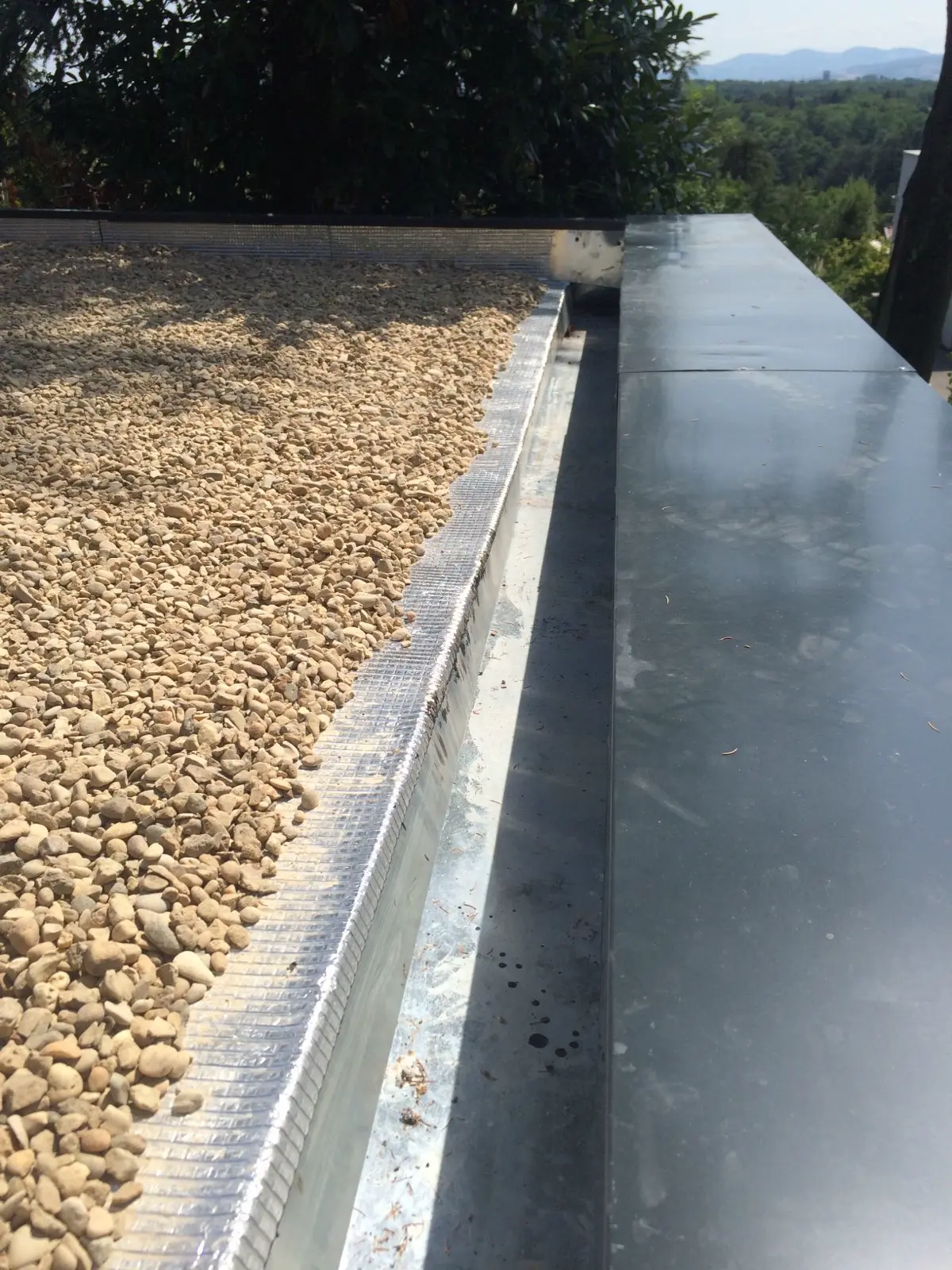 Nous avons rénové un toit-terrasse en procédant à la réfection du support, à l’installation de bandes d’étanchéité, à la restauration des bandeaux, et enfin, à l’application d’une couche de gravier. Cette série d’interventions garantit à présent la fiabilité et la longévité de ce toit-terrasse.